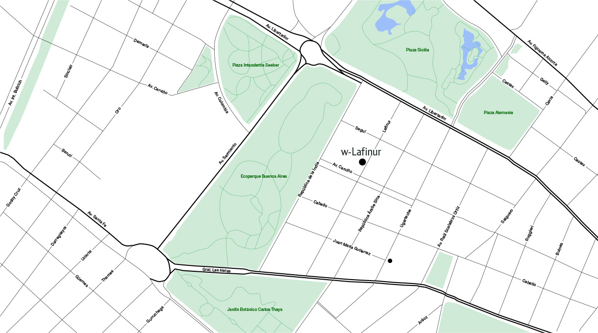 El edificio se encuentra en una de las zonas más destacadas de Palermo Chico, sobre la calle Lafinur. La ubicación combina belleza señorial de marcada influencia europea — como la estructura vecina del Palacio de los Patos y La Colorada — con aires cosmopolitas proporcionados por el corredor gastronómico del Boulevard Cerviño, y la atmósfera relajada de sus cuatro espacios verdes cercanos: El Parque Tres de Febrero, el Jardín Botánico de Buenos Aires, el Ecoparque y la Plaza Las Heras.